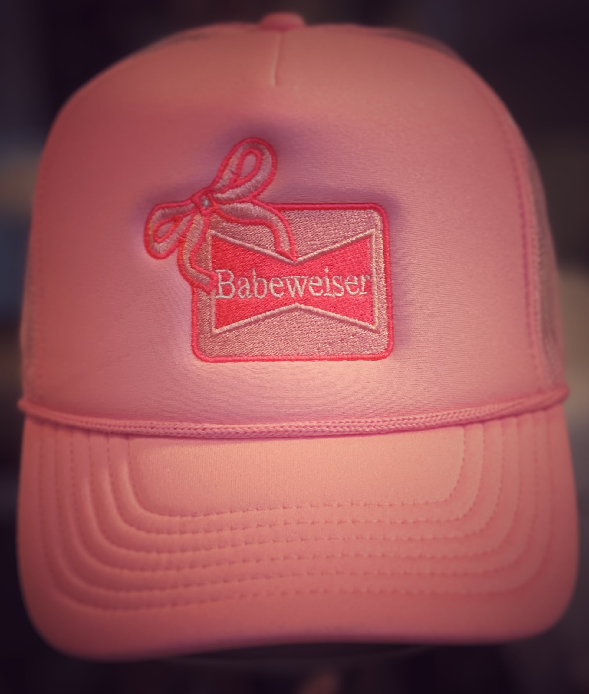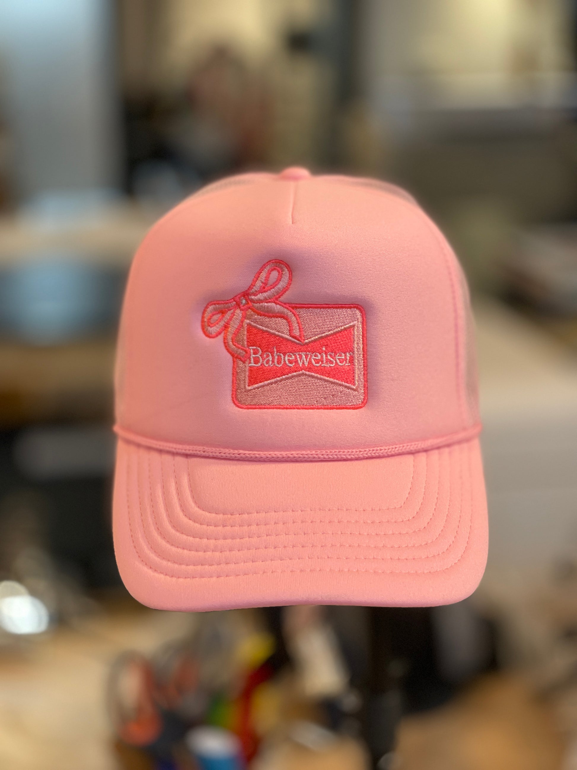 This Babeweiser Hat is intricately stitched with charming shades of pink. It also boasts a charming string wrapped around the front of the visor. Made from 100% polyester foam front and a mesh back, this hat has a structured five-panel, mid-profile design. The pre-curved visor is highlighted by a fashionable braided detail. Finishing it off is an adjustable double snapback closure for a custom fit.