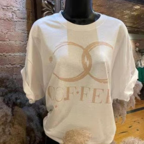 Experience the Coffee Tee, which perfectly captures the essence of a spilled cup of coffee with its impeccable style.